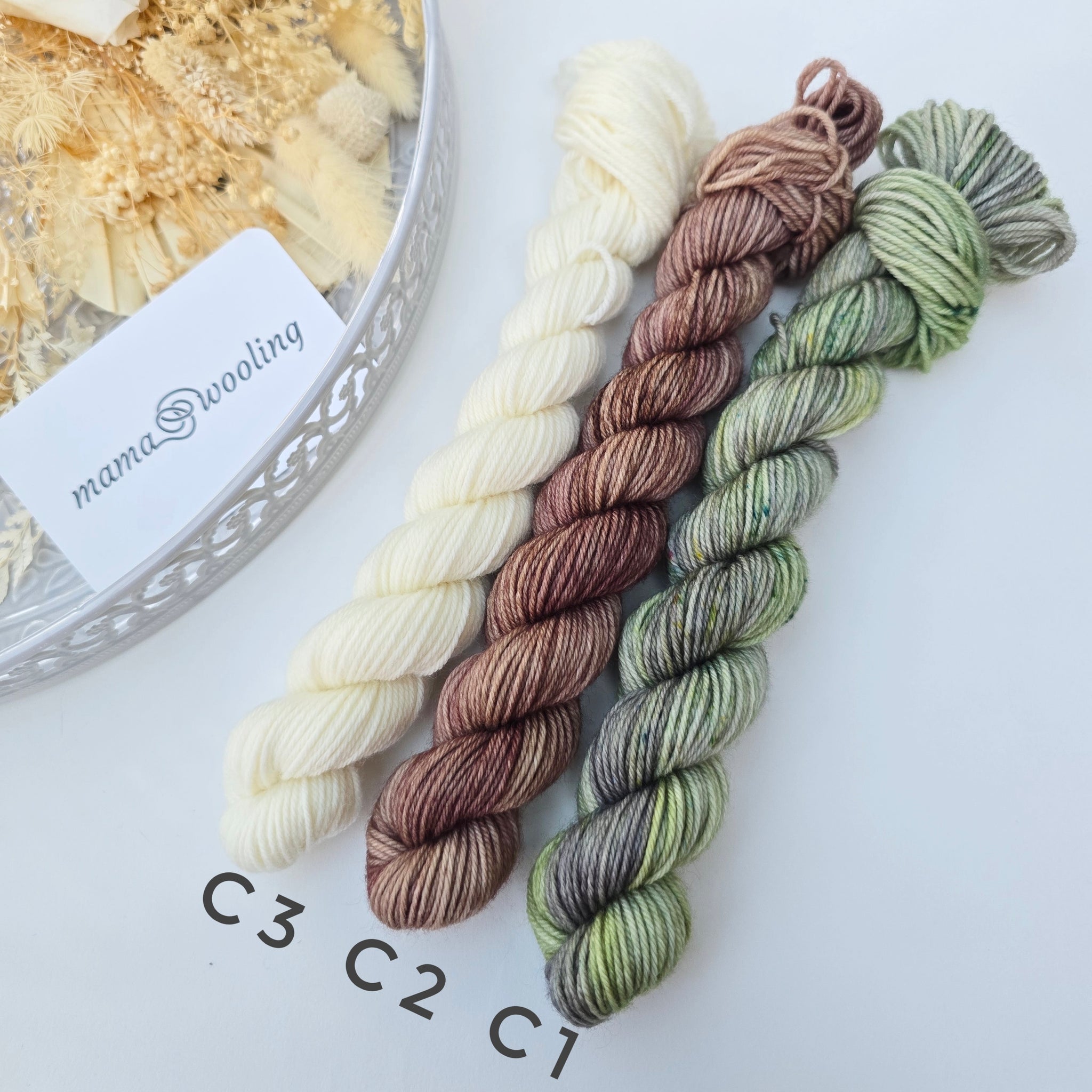 Colours have been specifically dyed with this gnome pattern and the designer's advice in mind (yes I've had a peek!) to ensure beautiful results.