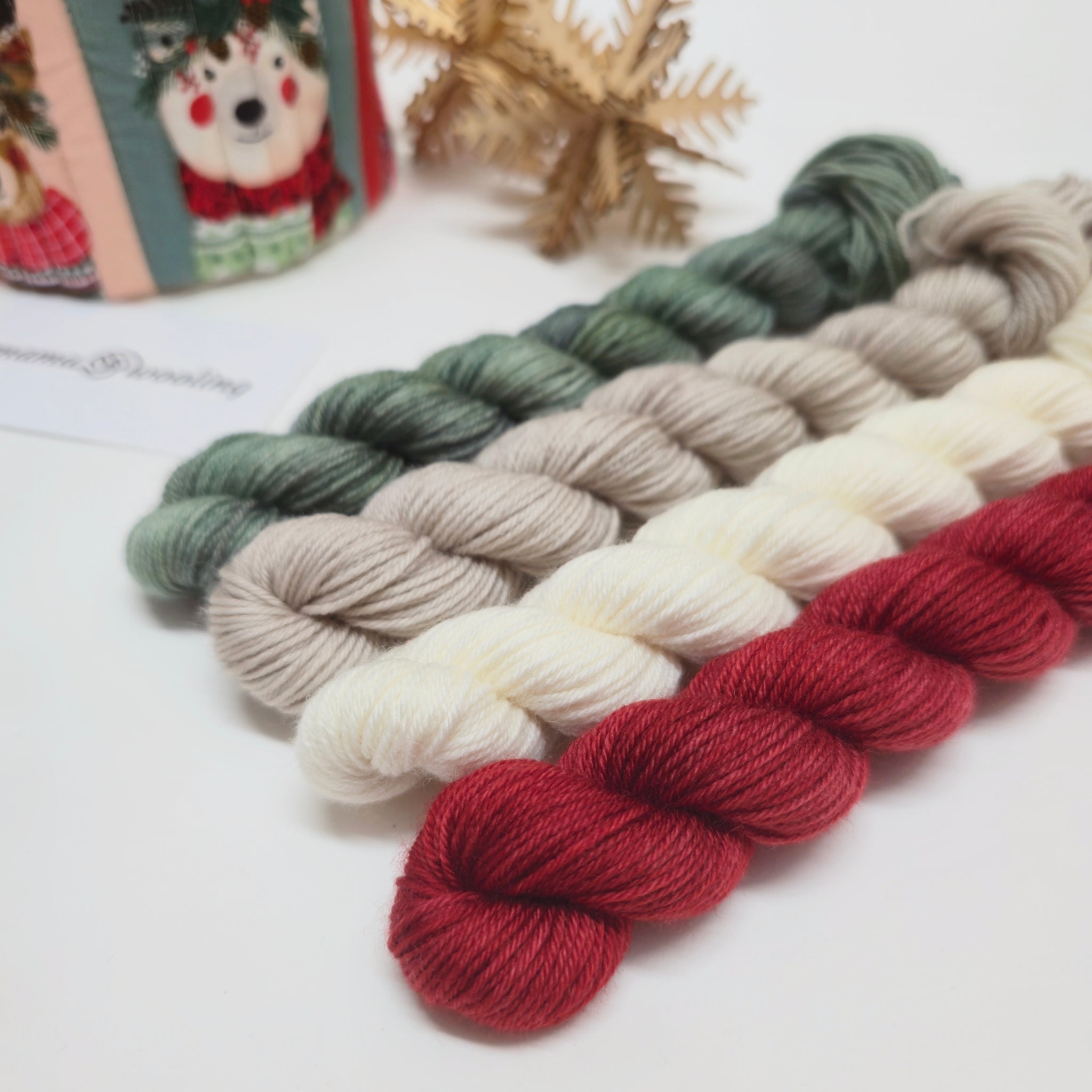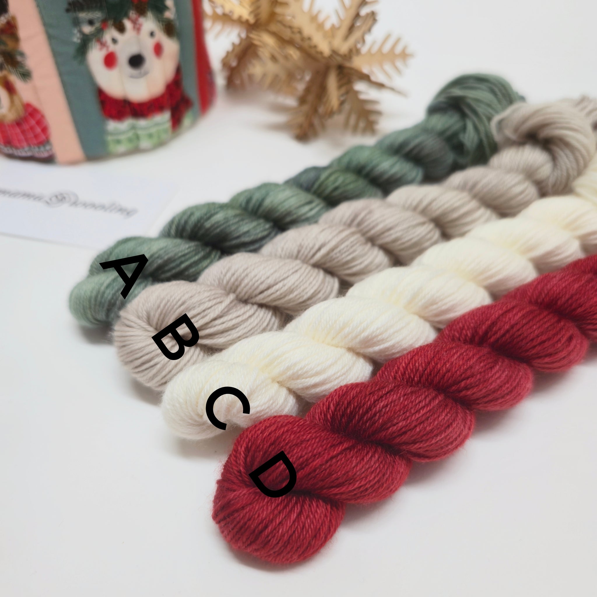 Colours have been specifically dyed with this gnome pattern and the designer's advice in mind (yes I've had a peek!) to ensure beautiful results. You will find a suggested colour order in the pictures but for my kits, you really just need to stick with C as suggested and can use any of the other colours as you wish, pick your tip top favourite for A and go from there!