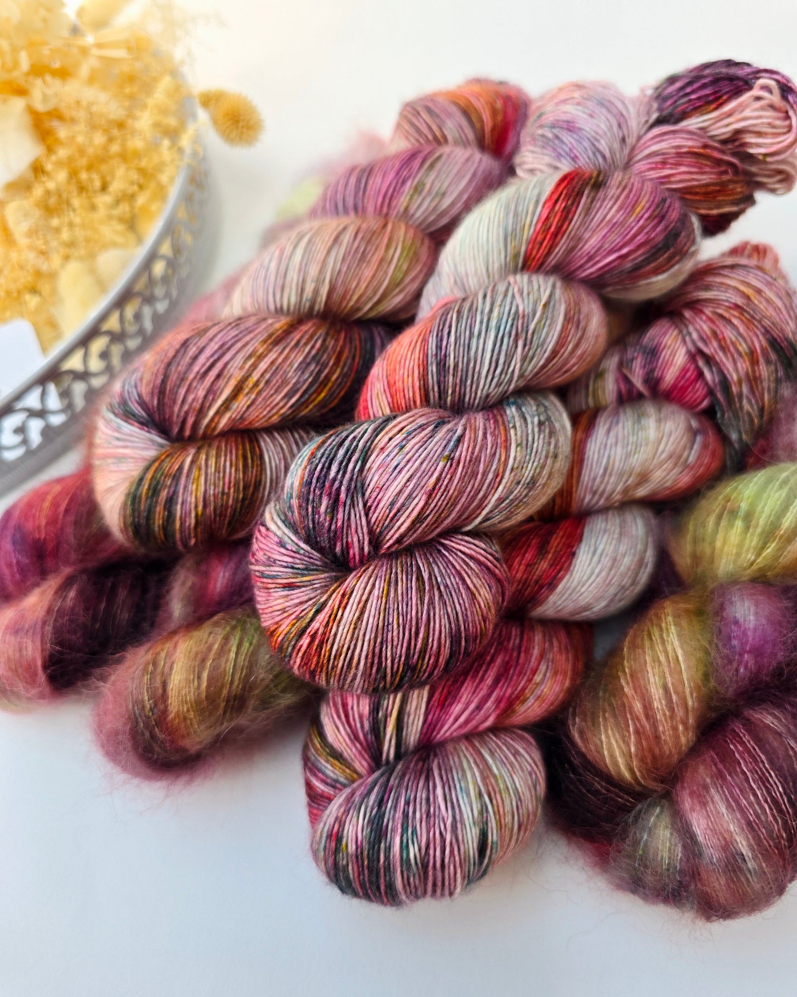 Please purchase all the yarn for your project at once as dye lots can vary. If you need more than is listed please email for a custom dyed lot just for you!